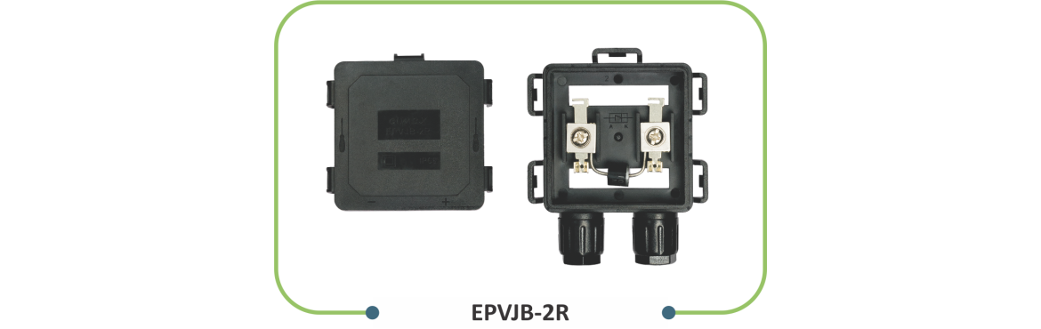 elmex PV Solar - 2 Rail Junction Box EPVJB-2R is suitable for Solar Street Light Low Wattage (less than 150W) Panels. It is designed with snap fit locking arrangement, available with 2 - in 1 - out cable connection and with 6A / 10A diode.