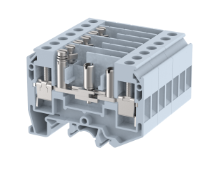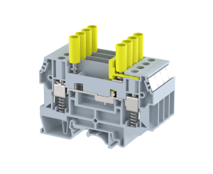 elmex Universal (TS32mm)DIN Rail Mounted Feed Through Terminals in Polyamide 66 Housing offers the complete range suitable for all control and power application. The proven spring clamp design offers high contact force and is easy to use. The range covers terminals for conductor sizes from 0.5 sq mm to 16 sq mm for spring clamp. The special foot design provides the slot for easy mounting and removal of a single terminal from the stack, using a screwdriver.