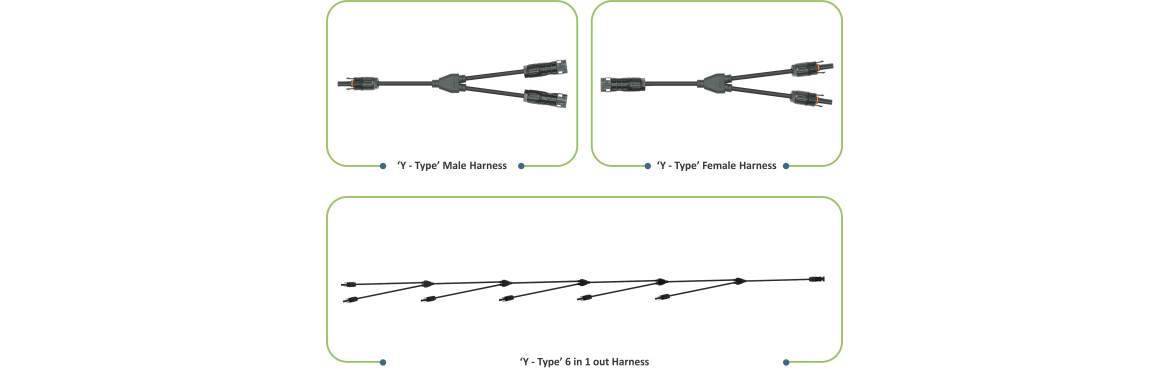 elmex PV Solar Over Moulded Wire Harnesses solutions are suitable for photovoltaic applications, having multiple input & output with plug & socket design suitable for 2.5, 4.0, 6.0 mm² size cables. They are constructed using fame retardant engineering thermoplastic elastomer suitable for exposure to UV rays and for application in PV power generation system. The over-molded wire harnesses are customized solutions and can be configured using straight connectors or inline fuse connectors with different cable sizes of 2.5, 4.0 & 6.0 mm².