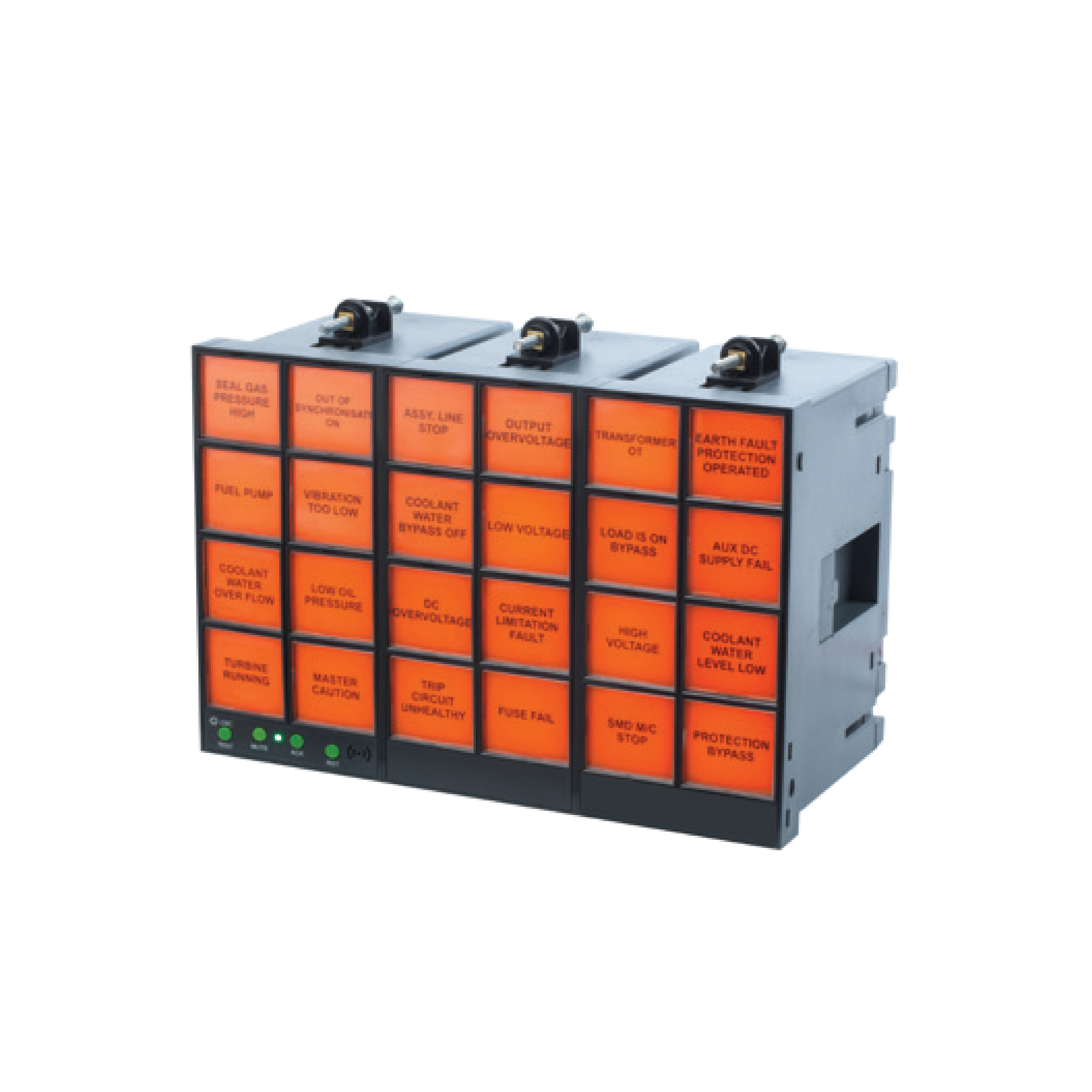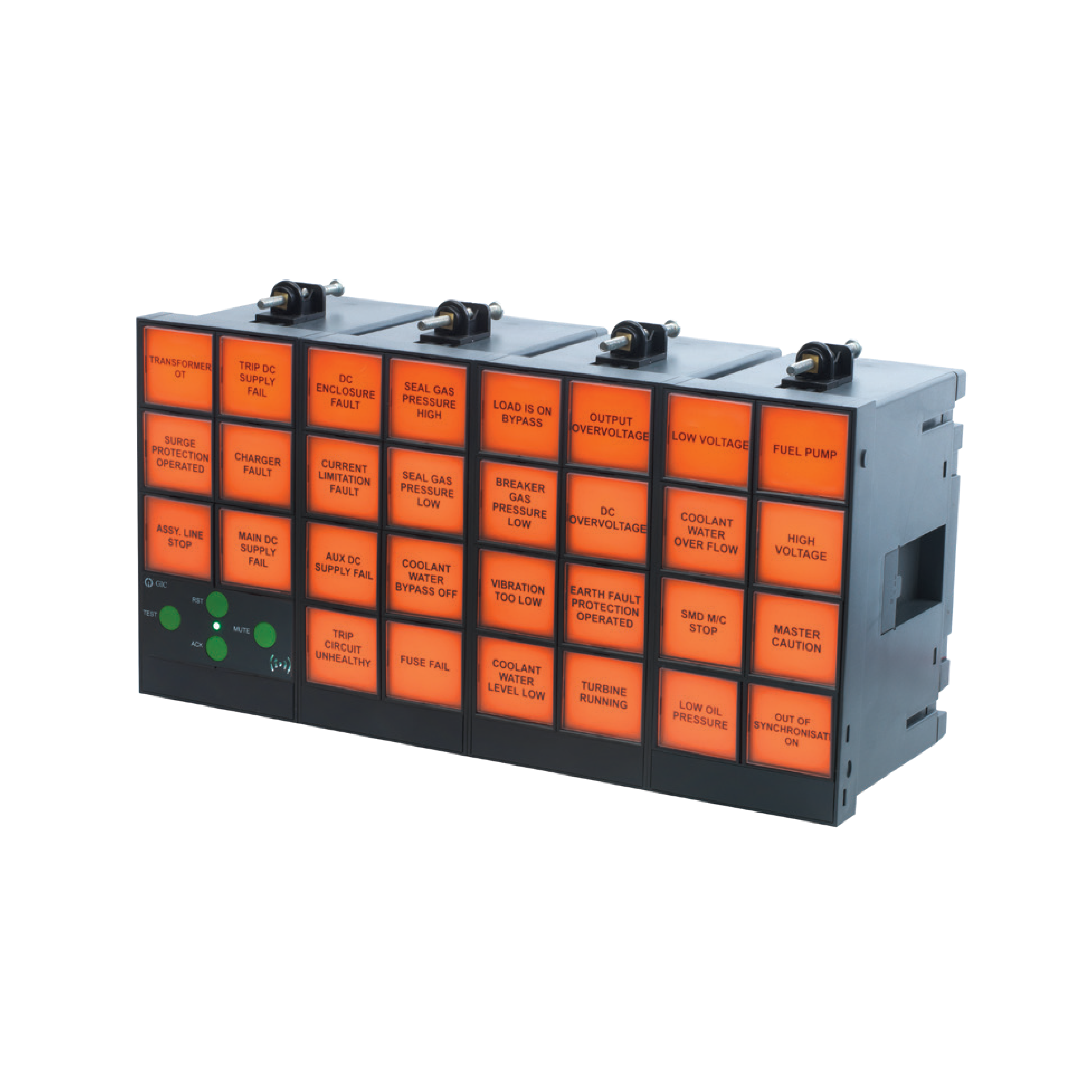 - Integral push buttons for Test, Acknowledge, Mute and Reset operations