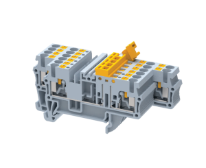 elmex disconnect terminal blocks with a Spring clamp connection technology is specially designed for certain applications in control and measurement circuits necessitate locating operating faults quickly without disconnecting the conductors. These terminal blocks mainly find applications in a secondary circuit of C.T. , Relay panel, etc. The test socket is a standard feature for these terminal blocks also the spring cage provides a tight fit connection against vibration sensitive application.